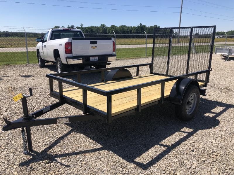 The 5X10 Single Axle Wood Floor Utility Trailer has treated wood floor, 15" radial tires, and rear gate. The trailer as 2,990 GVW and is black in color.