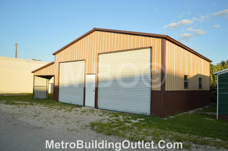 30X45X14 VERTICAL BOXED EAVE GARAGE W/(1)12X45X9 LEAN-TO, (4)WINDOWS, (1)12X12 DOOR, (1)10X10 DOOR, (1)WALK IN DOOR