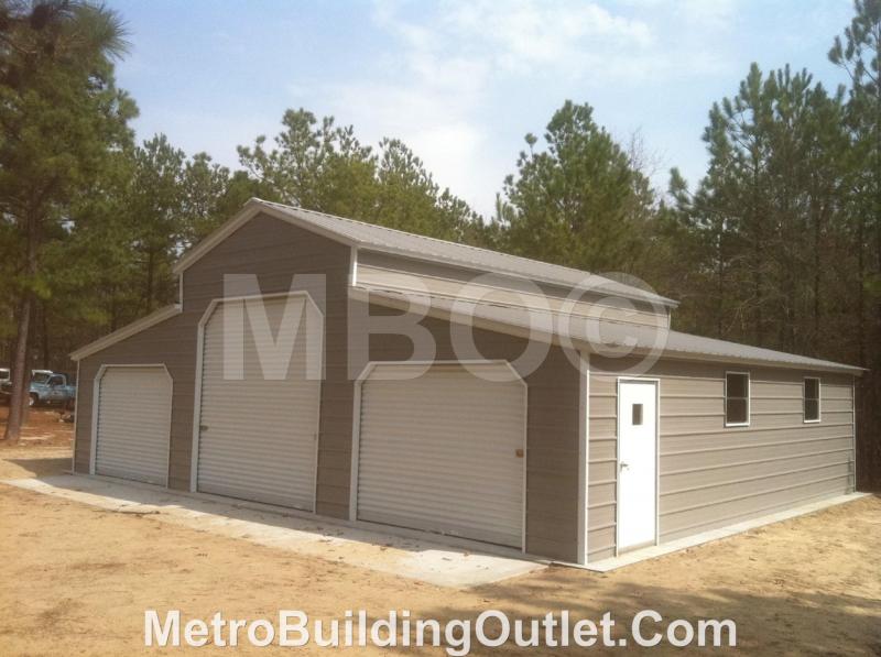 42X30 BARN / GARAGE #B123, VERTICAL ROOF, 18X30X12 RAISED CENTER BAY GARAGE, (2)12X30X9 LEAN-TO'S, (1)10X10 GARAGE DOOR, (2)10X8 GARAGE DOORS, (1)36X80 WALK IN DOOR, (4)30X36 WINDOWS.