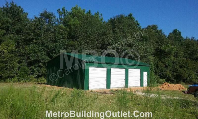 24X45X12 GARAGE / SHOP #G242, VERTICAL STYLE ROOF, VERTICAL SIDES, FULLY ENCLOSED, (1)WALK IN DOORS, (3)10X10 GARAGE DOORS