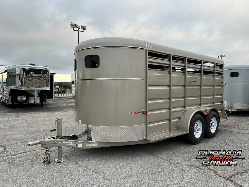 NEW 2025 GR 16 x 68, 10K, Bumper Pull Stock Trailer with Full Metal Roof, and 2-5200 # Drop Brake Axles, and ST235/80R16 Tires, 1 Dome Light, Full Swing with Half Slide Rear Gate, Sand.