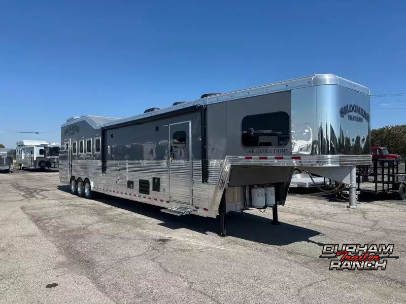 NEW 2026 Bloomer 5H, 16SW, Outlaw Conversion LQ with Slide Out~ Onan 8.0 Diesel Generator (50 Amp Service) with 20 Gallon Fuel Tank~ Dual Hydraulic Jacks~ Dual Batteries with Aluminum Battery Box~ Tri- 8000# Axles with Disc Brakes~ Continental Tires with 19.5 Aluminum Alcoa Wheels~ Heavy Duty Gooseneck Hitch~ 10 Hydraulic Slide Out~ LED Load and Running Lights~ Drop Windows with Bars on Head and Hip~ Mangers~ Oversized Side Load Ramp~ Dual Propane Tanks~ 8 Integrated Hay Pod with Step Above Ladder~ Escape Door on First Stall~ Huge Rear Tack with 5 Tier Saddle Rack~ Shelves~ Swingout 6 Tier Blanket Bar~ 2 Brush Trays~ 32 Bridle Hooks~ Full Width Rear Fold Down Step~ Keyless Entries~ Charcoal Skin