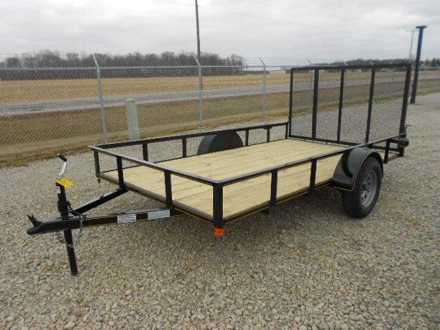The 6x10 P&T Single Axle Utility Trailer has treated wood floor, rear fold down gate and Silver Mod Wheels. The trailer as 2,990 GVW and is black in color.