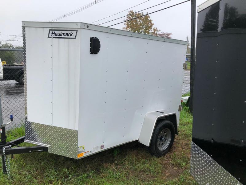 - Haulmark General - Steel Frame - V-Front - Tag - Flat Roof - 8ft Long - 5ft Wide - 2in 5,000lb Coupler - 3/4in PlexCore Decking - 5.0mm 3-Ply Birch Wall Liner - 3.5K SPR,4DP,IDL,EZ,205/75R15C RAD,STL SPK WHL - 12 Volt LED Dome Light (Requires 12v Wall Switch) - LED Mini Clear Lens Red Clearance Lights - LED Mini Clear Lens Amber Clearance Lights - LED Fender Mount Clearance Lights - LED Slim Line Clear Lens Tail Lights - License Plate Bracket w/ Separate Light - 4Way Trailer End Connector - 12v Surface-Mount Wall Switch - Polar White .030 Aluminum Exterior - One Piece Aluminum Roof - Sidewall Flow-Thru Vents - No Side Door - 5in Bar Lock Assembly for Rear Door - 6in Screw Pattern for Exterior Aluminum - Entry Level Mill Finish Trim Package - Crossmembers 24in On Center - 2in Sand Pad - DOT Approved 1/4" Safety Chains w/1/4" Slip Hook - Max Size Rear Ramp Door with Deluxe Trim - Standard V-Front - Roof Bows 24in On Center - No Beavertail - 5'6" Inside Height - 66"H Sidewall - 32in Two Piece A-Frame - 16in On Center Vertical U-Posts - 3in High Mainrails - Single Axle - 2,000lb Economy Line Top Wind Jack - Smooth Aluminum Fenders - 3/4in PlexCore Ramp Decking - 16"H Starbright Stoneguard - Standard ArmorTech Coating on A-Frame - V-Series Trailer