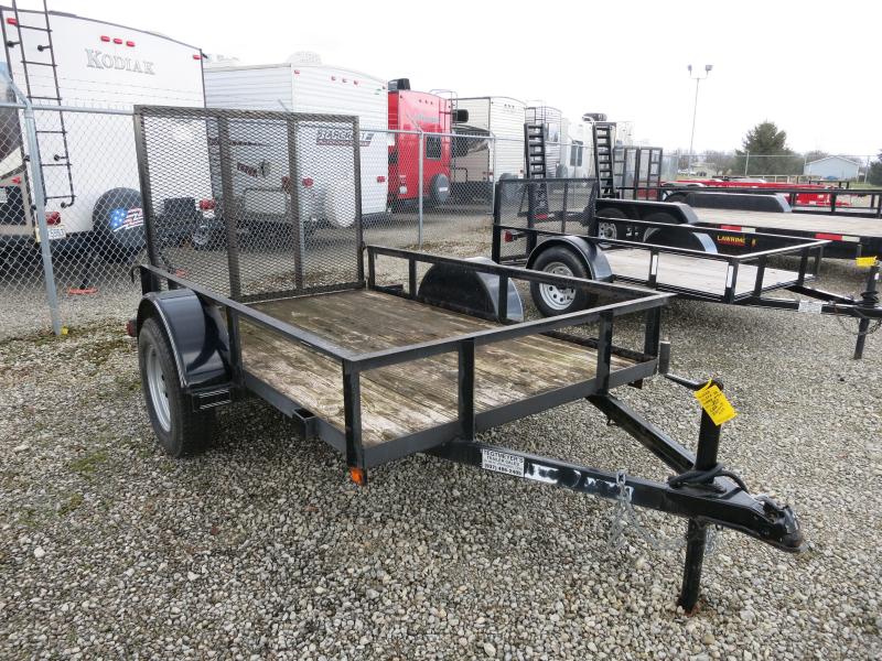 Used 2012 Diamond 5x8 Single Axle Utility Trailer. The trailer is black in color with 2990 gvw and 4' gate.