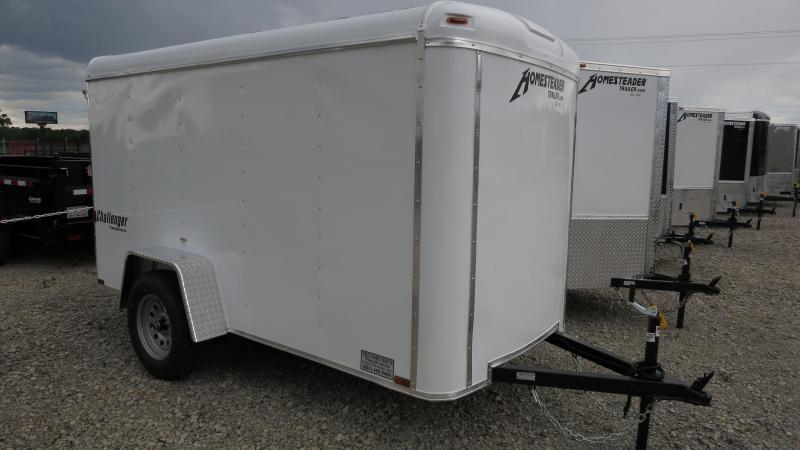 Homesteader 5x10 Single Axle Enclosed is white in color. The trailer has a single rear door and 2990 GVW. The Trailer is a Challenger model.