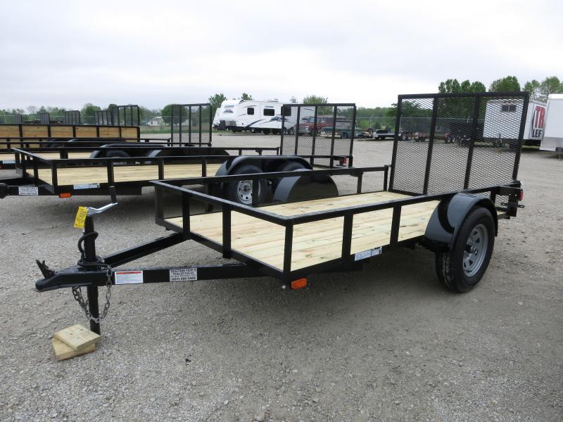 The 5X10 American Manufacturing Single Axle Wood Floor Utlity Trailer has treated wood floor, 15" tires, and rear gate. The trailer as 2,990 GVW and is black in color.