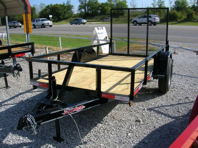 5'x8' Utility trailer, single 3500# axle, 3x2 frame, 4" channel wrap tongue, pressure-treated deck, 4x5 hd ramp gate, 205/75d15, spare mount, 2" bulldog