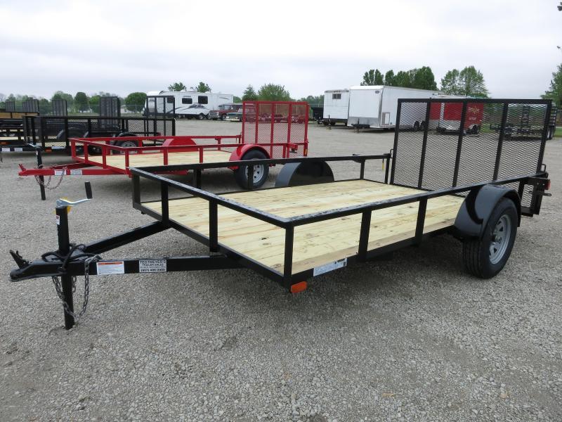 The 6X12 American Manufacturing Single Axle Wood Floor Utlity Trailer has treated wood floor, 15" tires, 2' dove, and rear gate. The trailer as 2,990 GVW and is black in color.