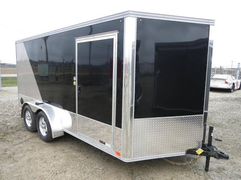 United 7x14 Tandem Axle Enclosed Trailer is a XLMTV Motorcycle trailer and is black and champain in color. The trailer is loaded with accessories and set up ready to haul your motorcycle. This motorcycle trailer has RV side door with flushlock, Aluminum wheels, d rings, wheel chocks, white interior walls, white ceiling, torsion axles, vinyl floor, polished corners, screwless smooth exterior sides, 6' interior height, rear ramp door and 28" V-nose.