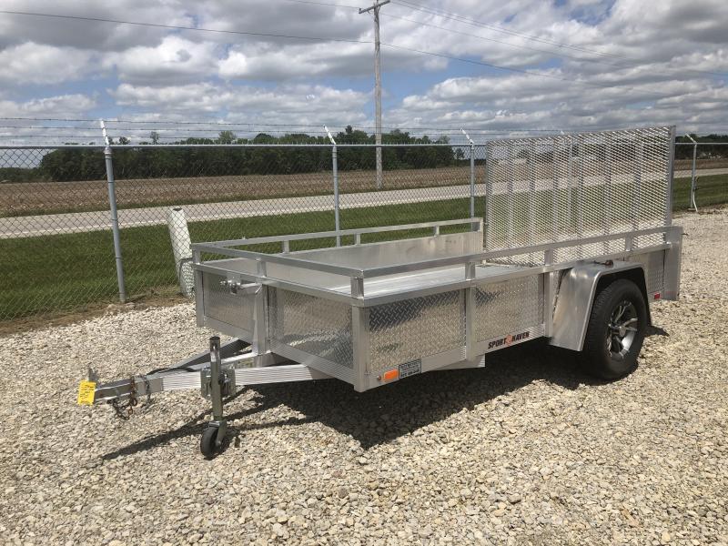 The Used Sport Haven 6x10 Single Axle Aluminum Utility Trailer. The gvw is 2,990 lbs. All aluminum floor, aluminum solid side, spare mount, aluminum wheels, and rear gate.