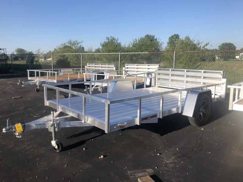 The Sport Haven 7x12 All Aluminum Single Axle Utility has Aluminum floor, aluminum wheels, and bi fold gate. The trailer is 2,990 GVW and is Silver in color.