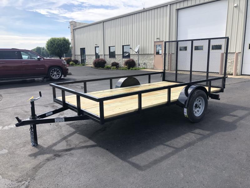 The 6X12 Single Axle Wood Floor Utility Trailer has treated wood floor, 15" radial tires, and rear gate. The trailer as 2,990 GVW and is black in color.
