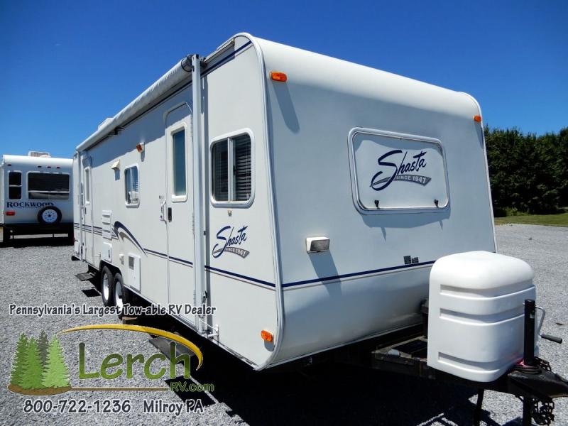 2002 Shasta Lite 27DSTravel Trailer RV / Sleeps 6 / Dry: 4,575lbs / Lightweight / Front Sofa / Generous Storage / Great for the Camping CoupleThe ideal camper for the camping family. This pre-owned 2002 Shasta Lite 27DS offers sleeping room for up to six people. As well as plenty of storage space for all those must-have camping goodies. A great lightweight travel trailer that features one slide out. So schedule an appointment today to see this exciting 2002 Shasta Lite 27DS. Are you ready to go camping? So it's time to get hitched up and on the road to your next camping adventure today. Let's get camping this weekend!At a low price, this used 2002 Shasta Lite 27DS is priced to sell today. Yes, you get a great instant savings. Due to the model year, this 2002 Shasta Lite 27DS is being sold as is. With no implied or expressed warranty by seller. So drive a little, save a lot at Central PA's largest towable RV dealership. We are waiting to hear from you, call 800-722-1236 today. So fill out the contact form for more information on this exciting RV. Therefore if you have a current trailer that you enjoy camping in, fill out our RV trade-inform, and we will provide you with honest trade-in values. So click or call today. Financing may be available for qualified buyers. Please contact our Business Department for all financing information. Also, additional extended service contracts are available for sale. RV buying made easy at Lerch RV.