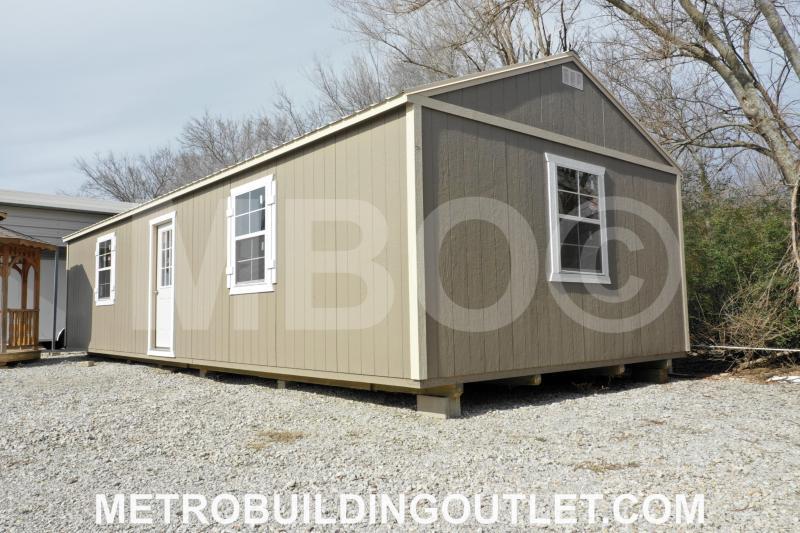 40YR. METAL ROOF, 5:12 ROOF PITCH, 7/16" OSB ROOF DECKING, 50YR. LP SMARTSIDE EXTERIOR SIDING & TRIM, PAINTED EXTERIOR, 7'9" SIDE WALL HEIGHT, PREMIUM 2"X4" STUD WALLS 16" ON CENTER, DOUBLE STUDDED EVERY 4', DOUBLE HEADER PLATE (2"X4" PLUS 2"X8" TOP PLATE), (4) 4"X6" PRESSURE TREATED SKIDS, PREMIUM 2"X6" FLOOR JOISTS 16" ON CENTER, PREMIUM 3/4" PLYWOOD FLOOR DECKING, (1) WALK IN DOOR (STD. 36"X80"), (4) 3'X4' DOUBLE PANE INSULATED WINDOWS.