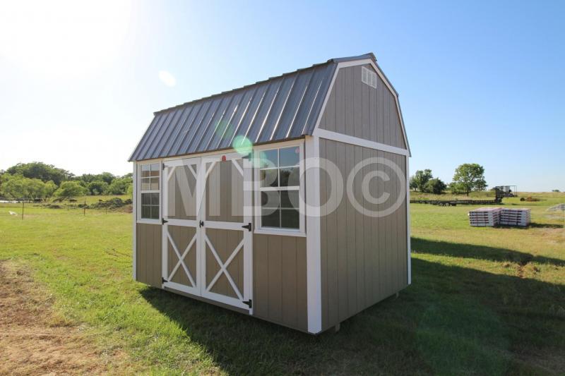 40YR. METAL ROOF, LOFTED BARN ROOF, 7/16" OSB ROOF DECKING, 50YR. LP SMARTSIDE EXTERIOR SIDING & TRIM, PAINTED EXTERIOR, 6'4" SIDE WALL HEIGHT, PREMIUM 2"X4" STUD WALLS 16" ON CENTER, DOUBLE STUDDED EVERY 4', DOUBLE HEADER PLATE (2"X4" PLUS 2"X8" TOP PLATE), (2) 4"X6" PRESSURE TREATED SKIDS, PREMIUM 2"X4" FLOOR JOISTS 16" ON CENTER, PREMIUM 3/4" PLYWOOD FLOOR DECKING, 6'X6' DOUBLE BARN DOORS, (2) 2'X3' SINGLE PANE WINDOWS .