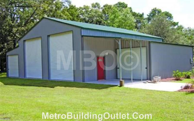 30X50X16 VERTICAL BOXED EAVE GARAGE W/(2)12X50X11 LEAN-TOS, FULLY ENCLOSED, (2)14X14 DOORS, (2)10X10 DOORS, (1)WALK IN DOOR,
