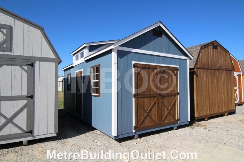 30YR. ARCHITECTURAL SHINGLE ROOF, 6:12 ROOF PITCH, 7/16" OSB ROOF DECKING, 6' DORMER, (2) 1'X2' DORMER WINDOWS, 50YR. LP SMARTSIDE EXTERIOR SIDING & TRIM, PAINTED EXTERIOR, 6'4" SIDE WALL HEIGHT, PREMIUM 2"X4" STUD WALLS 16" ON CENTER, DOUBLE STUDDED EVERY 4', DOUBLE HEADER PLATE (2"X4" PLUS 2"X8" TOP PLATE), (4) 4"X6" PRESSURE TREATED SKIDS, PREMIUM 2"X6" FLOOR JOISTS 16" ON CENTER, PREMIUM 3/4" PLYWOOD FLOOR DECKING, 6'X6' DOUBLE BARN DOORS, 3'X6' SINGLE BARN DOOR, (2) 2'X3' SINGLE PANE WINDOWS, SHUTTERS, (1) 4' LOFT, TRI-TONE.