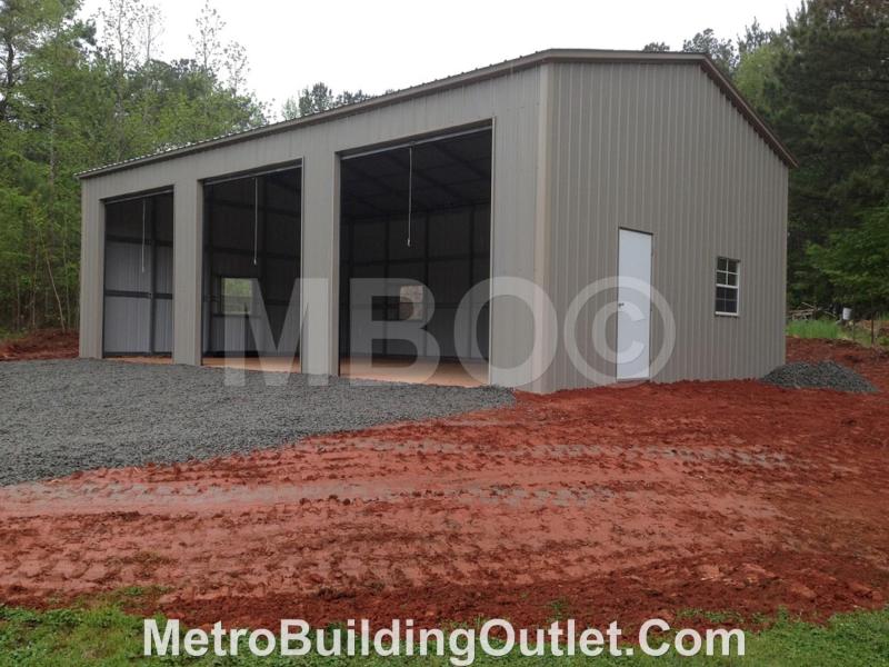 24X45X14 GARAGE / SHOP #G213, VERTICAL STYLE ROOF, VERTICAL SIDES, FULLY ENCLOSED, (1)WALK DOOR, (3)12X12 GARAGE DOORS, (4)WINDOWS