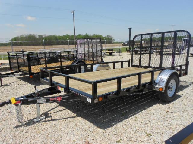 The 7x12 PJ Single Axle Utility Trailer has treated wood floor, Aluminum Treadplate fenders, rear gate, and powder coat paint. The trailer as 2,990 GVW and is black in color.