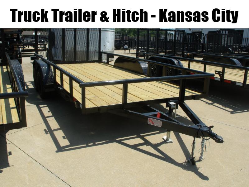 Here you are looking at a NEW 83" X 16 K & L Pipe Rail Top Tandem Axle Utility Trailer 2 - 3500 LB Dexter Axles with Easy-Lube-Spindles 4 WL Brakes 2" Cast Coupler Wrapped Tongue Painted Polyurethane Paint 7 Way electrical plug Safety chains Spring assisted rear ramp 4' Treated wood deck Spare tire mount curb side LED Lights ST225/75R/15 Radial trailer tires Black MOD Wheels HD Diamond Steel Fenders