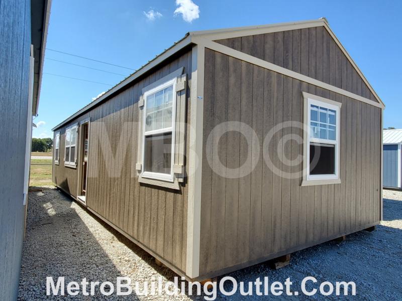 40YR. METAL ROOF, 5:12 ROOF PITCH, 7/16" OSB ROOF DECKING, 50YR. LP SMARTSIDE EXTERIOR SIDING & TRIM, STAINDED EXTERIOR, 7'9" SIDE WALL HEIGHT, PREMIUM 2"X4" STUD WALLS 16" ON CENTER, DOUBLE STUDDED EVERY 4', DOUBLE HEADER PLATE (2"X4" PLUS 2"X8" TOP PLATE), (4) 4"X6" PRESSURE TREATED SKIDS, PREMIUM 2"X6" FLOOR JOISTS 16" ON CENTER, PREMIUM 3/4" PLYWOOD FLOOR DECKING, (2) WALK IN DOOR (STD. 36"X80"), (7) 3'X4' DOUBLE PANE INSULATED WINDOWS, (1) 2'X3' DOUBLE PANE INSULATED WINDOWS, 60' OF INTERIOR STUD WALLS (FRAMED FOR 2B, 1B AND UTILITY ROOM), DELUXE ELECTRICAL PACKAGE (200AMP BREAKER BOX, 8-110V OUTLETS, 3-LIGHTS, 3-SWITCHES)