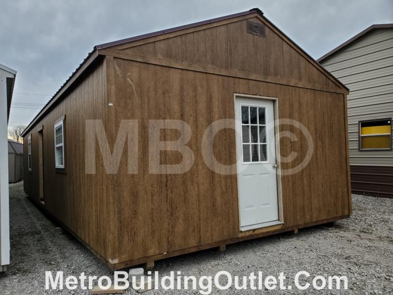 40YR. METAL ROOF, 5:12 ROOF PITCH, 7/16" OSB ROOF DECKING, 50YR. LP SMARTSIDE EXTERIOR SIDING & TRIM, STAINED EXTERIOR, 7'9" SIDE WALL HEIGHT, PREMIUM 2"X4" STUD WALLS 16" ON CENTER, DOUBLE STUDDED EVERY 4', DOUBLE HEADER PLATE (2"X4" PLUS 2"X8" TOP PLATE), (4) 4"X6" PRESSURE TREATED SKIDS, PREMIUM 2"X6" FLOOR JOISTS 16" ON CENTER, PREMIUM 3/4" PLYWOOD FLOOR DECKING, (1) WALK IN DOOR (STD. 36"X80"), (1) 3'X4' DOUBLE PANE INSULATED WINDOW, (1) 3'X' DOUBLE PANE INSULATED WINDOW, RADIANT BARRIER