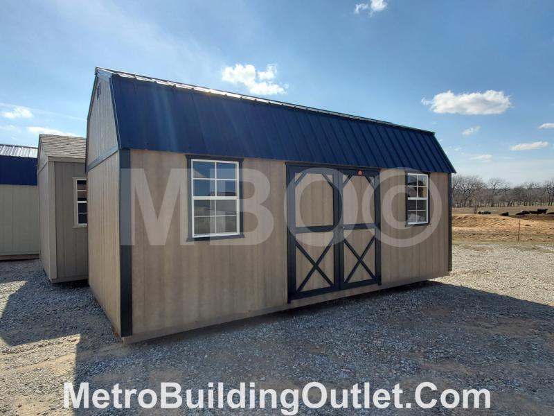 40YR METAL ROOF, LOFTED BARN ROOF, 7/16" OSB ROOF DECKING, 50YR. LP SMARTSIDE EXTERIOR SIDING & TRIM, STAINED EXTERIOR, 6'4" SIDE WALL HEIGHT, PREMIUM 2"X4" STUD WALLS 16" ON CENTER, DOUBLE STUDDED EVERY 4', DOUBLE HEADER PLATE (2"X4" PLUS 2"X8" TOP PLATE), (4) 4"X6" PRESSURE TREATED SKIDS, PREMIUM 2"X6" FLOOR JOISTS 16" ON CENTER, PREMIUM 3/4" PLYWOOD FLOOR DECKING, 6'X6' DOUBLE BARN DOORS, (2)2X3 SINGLE PANE WINDOW, (1) 8 ' WORK BENCH, (1) 4X8 PEGBOARD, (4) 10' SHELVES.
