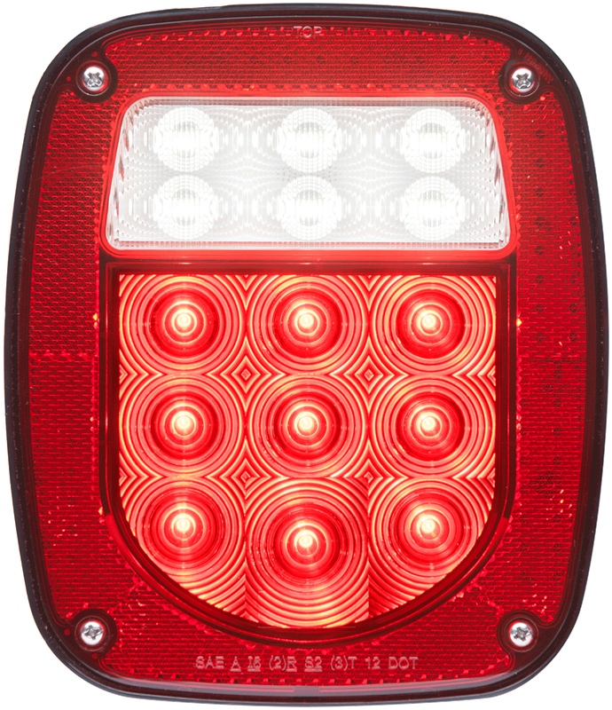 Combination stop/turn/tail/back-up/license light, hard wired, driver side