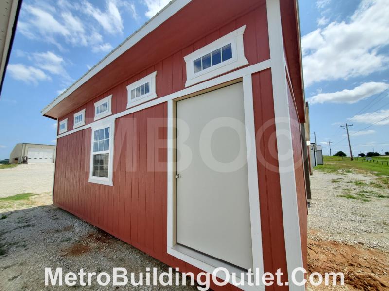 40YR. METAL ROOF, 5:12 SINGLE ROOF PITCH, 7/16" OSB ROOF DECKING, 50YR. LP SMARTSIDE EXTERIOR SIDING & TRIM, PAINTED EXTERIOR, 7'2" SIDE WALL HEIGHT, PREMIUM 2"X4" STUD WALLS 16" ON CENTER, DOUBLE STUDDED EVERY 4', DOUBLE HEADER PLATE (2"X4" PLUS 2"X8" TOP PLATE), (2) 4"X6" PRESSURE TREATED SKIDS, PREMIUM 2"X6" FLOOR JOISTS 16" ON CENTER, PREMIUM 3/4" PLYWOOD FLOOR DECKING, (1) WALK IN DOOR (STD. 36"X80"), (1) 3'X4' DOUBLE PANE INSULATED WINDOWS, (5) 1'X2' INS. DORMER WINDOWS, RADIANT BARRIER, VAPOR BARRIER.