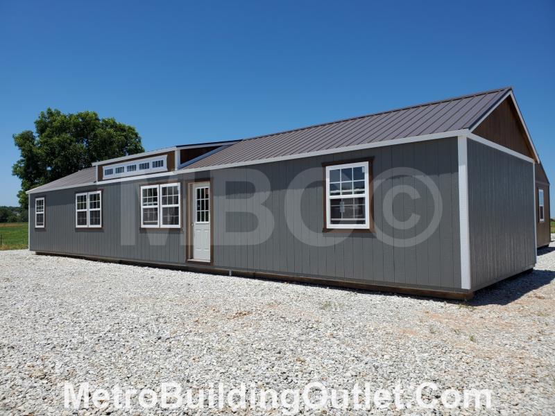 40YR. METAL ROOF, 6:12 ROOF PITCH, (2)16' DORMERS, (1)12' DORMER, (1)12' DORMER, 7/16" OSB ROOF DECKING, (16) 1'X2' INSULATED DORMER WINDOWS, 50YR. LP SMARTSIDE EXTERIOR SIDING & TRIM, PAINTED EXTERIOR, 7'9" SIDE WALL HEIGHT, PREMIUM 2"X4" STUD WALLS 16" ON CENTER, DOUBLE STUDDED EVERY 4', DOUBLE HEADER PLATE (2"X4" PLUS 2"X8" TOP PLATE), (4) 4"X6" PRESSURE TREATED SKIDS, PREMIUM 2"X6" FLOOR JOISTS 16" ON CENTER, PREMIUM 3/4" PLYWOOD FLOOR DECKING, (2) WALK IN DOOR (STD. 36"X80"), (12) 3'X4' DOUBLE PANE INSULATED WINDOWS, (1) 2'X3' DOUBLE PANE INSULATED WINDOWS, 96' OF INTERIOR STUD WALLS, DIVIDED FOR (2) BEDROOM, (2) BATHROOM & UTILITY ROOM, TRI-TONE PAINT, DELUXE ELECTRICAL PACKAGE PLUS (200AMP BREAKER BOX, 21-110V OUTLETS, 8-LIGHTS, 8-SWITCHES, 2-220V OUTLETS, 2-EXTERIOR LIGHTS), RADIANT BARRIER.