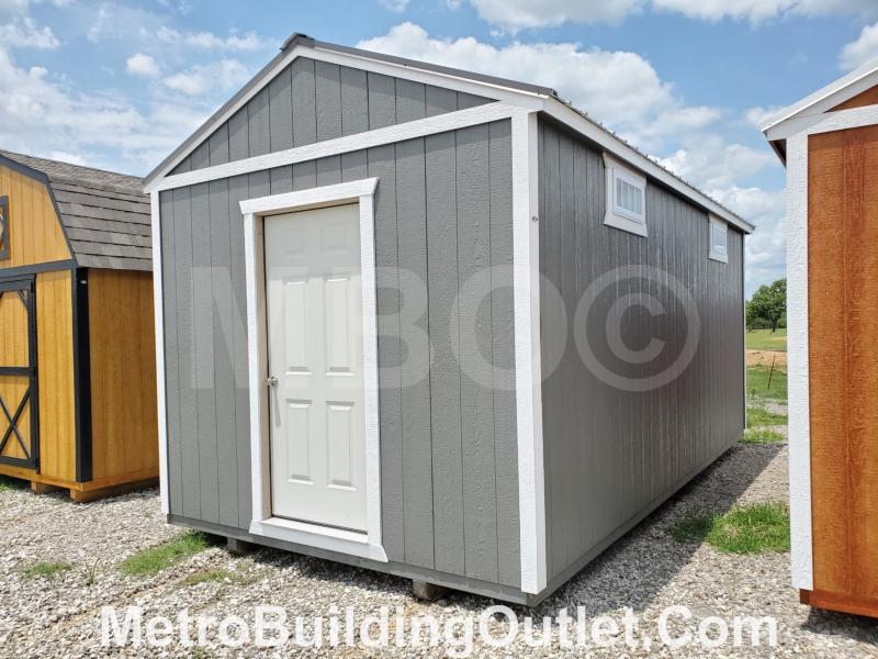 40YR. METAL ROOF, 5:12 ROOF PITCH, 7/16" OSB ROOF DECKING, 50YR. LP SMARTSIDE EXTERIOR SIDING & TRIM, PAINTED EXTERIOR, 7'2" SIDE WALL HEIGHT, PREMIUM 2"X4" STUD WALLS 16" ON CENTER, DOUBLE STUDDED EVERY 4', DOUBLE HEADER PLATE (2"X4" PLUS 2"X8" TOP PLATE), (4) 4"X6" PRESSURE TREATED SKIDS, PREMIUM 2"X6" FLOOR JOISTS 16" ON CENTER, PREMIUM 3/4" PLYWOOD FLOOR DECKING, (1) WALK IN DOOR (STD. 36"X80"), (4) 1'X2' DOUBLE PANE INSULATED WINDOWS, RADIANT BARRIER, VAPOR BARRIER, INSULATED ROOF, INSULATED WALLS, 50YR. LP SMARTSIDE PANELED INTERIOR WALLS, 50YR. LP SMARTSIDE PANELED CEILING, 120' OF 16' SHELVES.