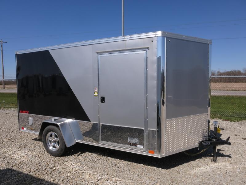 United Trailers 7x12 Single Axle Enclosed Trailer is a XLMTV Motorcycle Trailer and is black & silver in color. The trailer is loaded with accessories and set up ready to haul your motorcycle. This motorcycle trailer has RV side door with flushlock, Aluminum wheels, d rings, wheel chocks, white interior walls, white ceiling, polished corners, screwless smooth exterior sides, 6' interior height, rear ramp door and 28" V-nose.