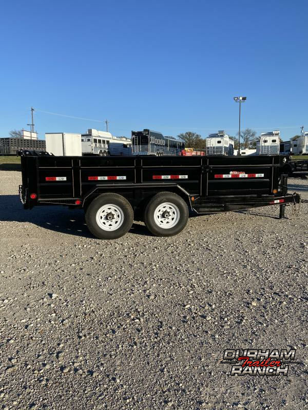 USED 2022 GR Dump Trailer, Bumper Pull, 82" X 14' with 24" Sides, Ramps, 2-Way Gate, and Two 7,000# Brake Axles.