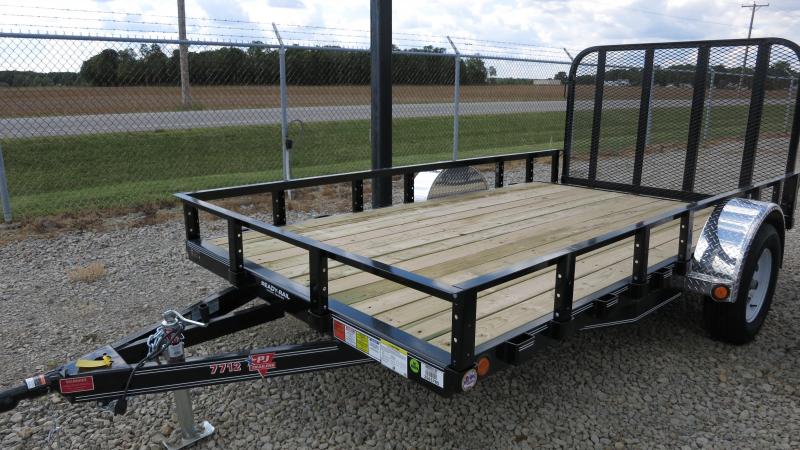 The 6x12 PJ Single Axle Utility Trailer has treated wood floor, Aluminum Treadplate fenders, rear gate, dove tail and powder coat paint. The trailer as 2,990 GVW and is black in color.