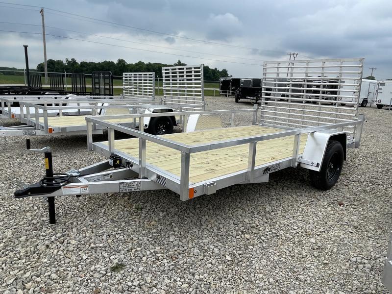 The Black Rhino 7x12 All Aluminum Single Axle Utility has a treated wood floor, and rear fold down gate. The trailer is 2,990 GVW and is Silver in color.
