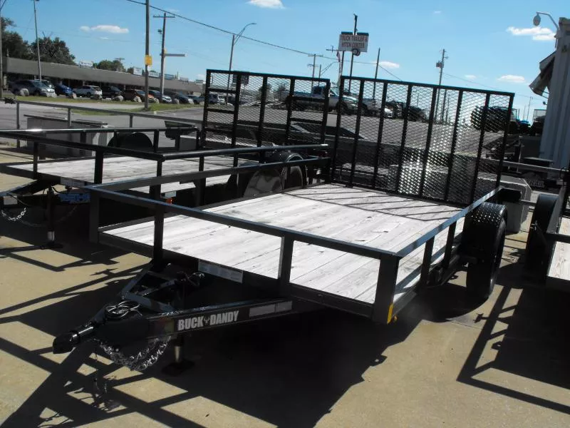 New Buck Dandy 77 X 12 Utility Trailer with Spring assisted front and rear folding tube Gate