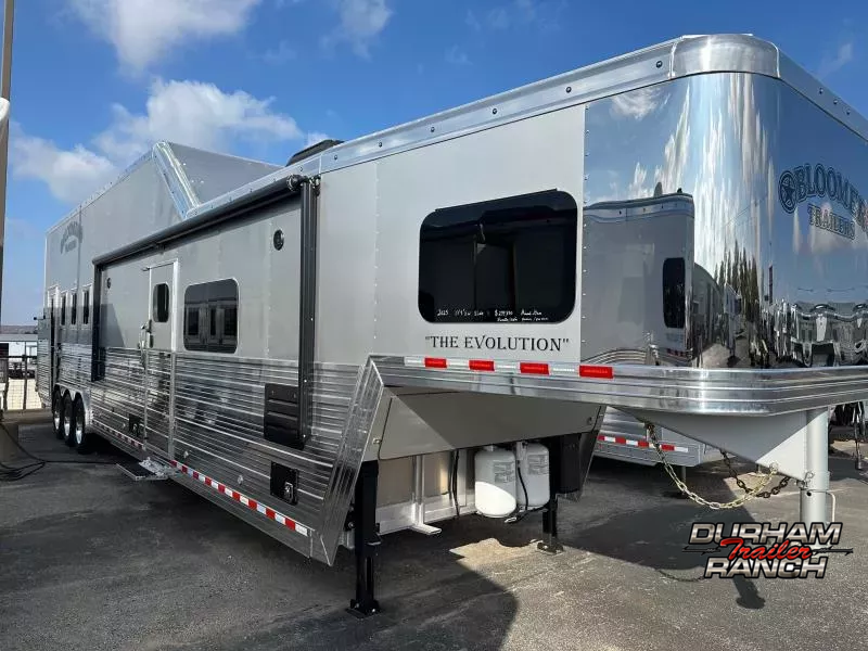 NEW 2025 Bloomer 4H, 179 SW, Loft LQ with Slide Out~ Onan 8.0 Diesel Generator (50 Amp Service) ~ Dual Hydraulic Jacks~ Tri 8500 # Axles with Hydraulic Disc Brakes~ Continental 265/70R 19.5 Tires with 19.5 Alcoa Aluminum Wheels~ Heavy Duty Gooseneck Hitch~ 9 Hydraulic Slide Out~ LED Load and Running Lights~ Drop Windows with Head and Hip ~ Mangers~ Flow Through Face and Wither Shields~ Oversized Side Load Ramp~ Dual Propane Tanks~ Solid Rear Tack~ Hat Shelves~ 2 Brush Trays~ Full Width Rear Step~ 4 Tier Saddle Racks~ 5 Tier Swingout Blanket Bar~ Bridle Hooks~ Boot Bars~ Keyless Entries~ Integrated 8 Hay Pod with Ladder~
