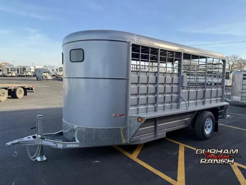 NEW 2026 GR 16 x 68, 7K Bumper Pull Stock Trailer with Full Metal Roof, Brush Fenders, and 1 7000# Drop Spring Axles, Smooth Rubber Floor, Cowboy Sides, Compartments at 8-8, Silver.
